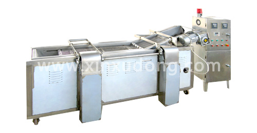 小型油炸流水線的特點:全不銹鋼制作,雙網(wǎng)帶輸送產(chǎn)品,變頻調(diào)速,定型板式網(wǎng)帶,防止變形,油水混合自動排渣。設(shè)有網(wǎng)帶翻轉(zhuǎn)機構(gòu),能隨時清理油內(nèi)漂浮殘渣和網(wǎng)帶上殘渣,自動控溫,使油炸產(chǎn)品有一個松脆誘人的穩(wěn)定外觀,使用安全.方便.衛(wèi)生,是理想的油炸設(shè)備,本機特別適用于快餐食品,休閑食品,方便食品的油炸,廣泛應(yīng)用于學生營養(yǎng)快餐,食品加工,酒店機關(guān),企業(yè)單位等,適合炸制時間在10秒-3分鐘內(nèi)的用戶需要