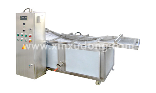 小型油炸流水線的特點:全不銹鋼制作,雙網帶輸送產品,變頻調速,定型板式網帶,防止變形,油水混合自動排渣。設有網帶翻轉機構,能隨時清理油內漂浮殘渣和網帶上殘渣,自動控溫,使油炸產品有一個松脆誘人的穩定外觀,使用安全.方便.衛生,是理想的油炸設備,本機特別適用于快餐食品,休閑食品,方便食品的油炸,廣泛應用于學生營養快餐,食品加工,酒店機關,企業單位等,適合炸制時間在10秒-3分鐘內的用戶需要